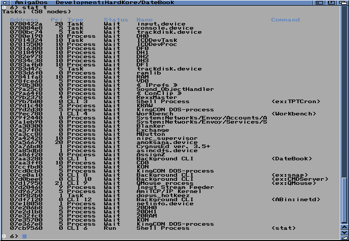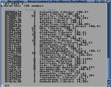 Stat is an extension of C:Status. It will list currently loaded CLIS, Tasks, Libraries, Fonts, devices, message ports and resources.